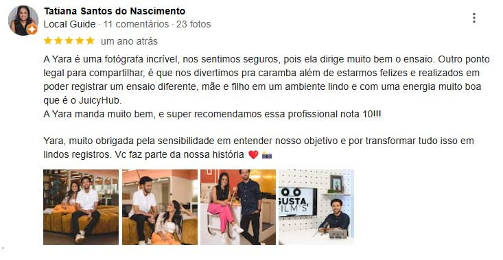 Após o ensaio, em até 48 horas você recebe o link com a pré-seleção das fotos para escolher as que vão compor o seu projeto. Feita a seleção, as fotos estarão disponíveis em até 12 dias úteis, prontas para você usar em todas as suas plataformas.